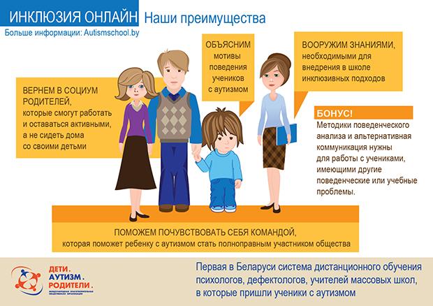 – Полтора года назад мы запустили интернет-ресурс Autismschool.by, посвященный обучению детей с аутизмом в массовой школе, – продолжает руководитель проекта «Инклюзия Онлайн» Ирина Дергач. – Анонсы, записи вебинаров, анализ часто возникающих у специалистов вопросов будут выложены на нем в открытом доступе.