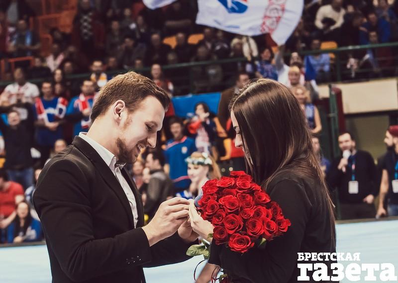 «Получается, о том, что я буду делать предложение своей девушке, уже знали в Европейской федерации гандбола, — рассказал, улыбаясь, Антон. — В субботу 19 марта перед самым матчем у нас (у Антона и сотрудников гандбольного клуба — прим. авт.) была репетиция. Как раз был представитель Европейской федерации. Он меня увидел, спросил на английском, уверен ли я? Я сказал, что да, уверен! Он спросил, а если она скажет «нет»? Я говорю: «Нет» она сказать не может!»