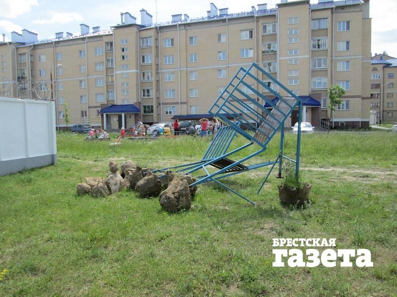 «Мы узнали, что на основании решений транспортной прокуратуры и центра стандартизации, метрологии и сертификации сотрудниками Брестской дистанции гражданских сооружений произведен демонтаж оборудования детских площадок по ул. Мошенского, 100А и 102А. Основанием, как сказал представитель дистанции гражданских сооружений, является несоответствие этих детских площадок современным нормам безопасности», — прокомментировал проблему Масловский.