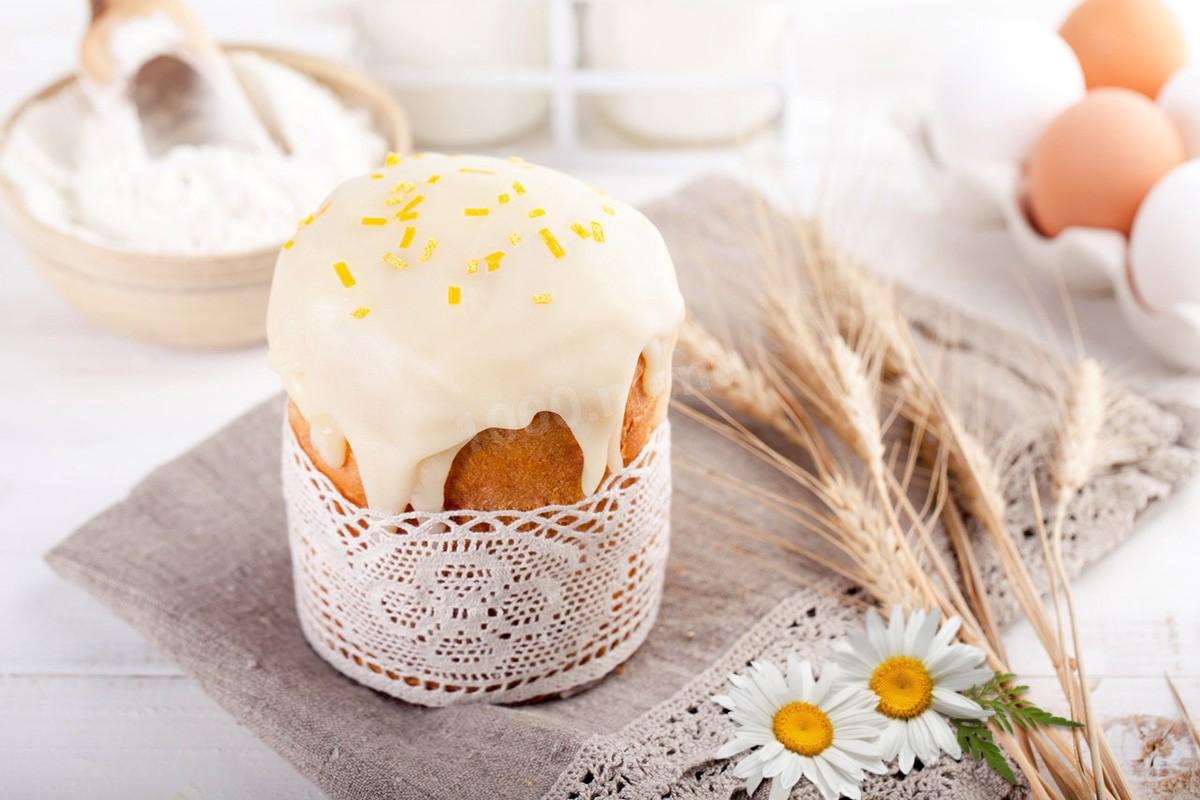 Готовый остывший кулич выньте из формы и глазируйте помадкой. Для этого ее предварительно нужно подогреть на водяной бане до 55 — 65С и разбавить чуть-чуть водой, чтобы она была как глазурь.