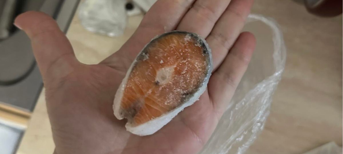 Женщина также предположила, что ей могли продать более дешевую рыбу под видом семги, хотя внешне продукт все же напоминает лосося. Самый крупный кусок из заказа, по ее словам, оказался ближе к хвостовой части — и выглядел чуть более «прилично».