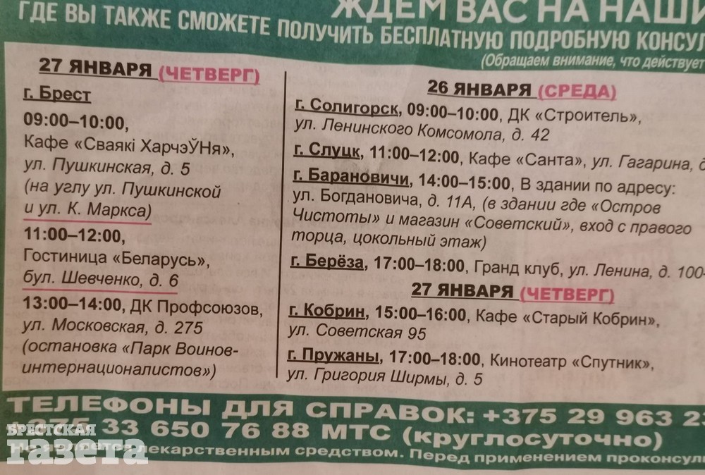 Трое молодых мужчин, представлявших компанию, не затрудняли себя рекламой товара. Сообщили скороговоркой, что «Здравомед» более 10 лет на рынке, все ингредиенты препаратов из экологически чистых районов Алтая, Сибири и Урала. В Брест, якобы, приезжают уже полтора года.