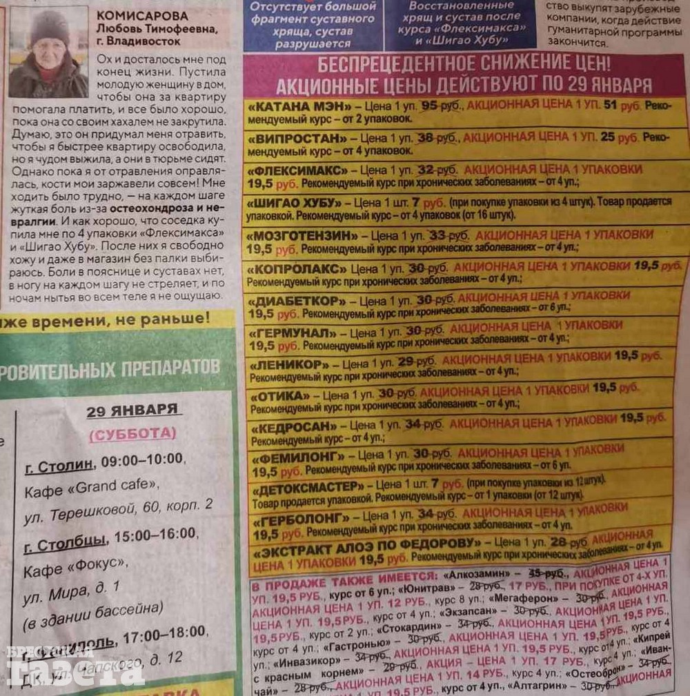 Рекламная газета, которую в январе, накануне продаж обнаружили в почтовых ящиках жители Бреста и других городов, сработана топорно. Рассчитана она в первую очередь на стариков, которые не сидят в интернете, ограничены в общении и в большинстве своем в силу возраста страдают целым букетом заболеваний. Про тех, кто пользуется их доверчивостью, принято говорить: «Креста на них нет!».