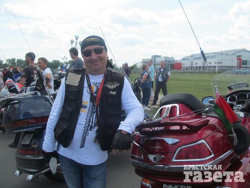 — Я приехал из Минской области, города Столбцы. В брестском мотофестивале участвую уже в 18-й раз. Был на фестивалях в Польше, по всей Европе. В Бресте массовость, да и это уже традиция тут участвовать. На хорошем мотоцикле катаюсь уже 18 лет, а так с 14 лет. Жена заставляет с ней ездить, но сегодня она не со мной. Мотоциклист — это который поехал и приехал, а байкер — это жизнь, это движение, адреналин, просто отвлечься от всего. Самый лучший релакс.