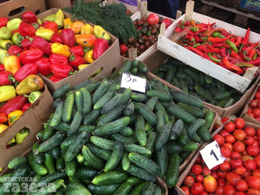 Здесь помидоры стоили от 1,98 до 2,75 рубля, капуста – от 50 копеек до 79, лук — 72, морковь — 62, перец – от 1,79 до 8,50 рубля, свекла — 50 копеек за килограмм, картофель – от 40 до 57.