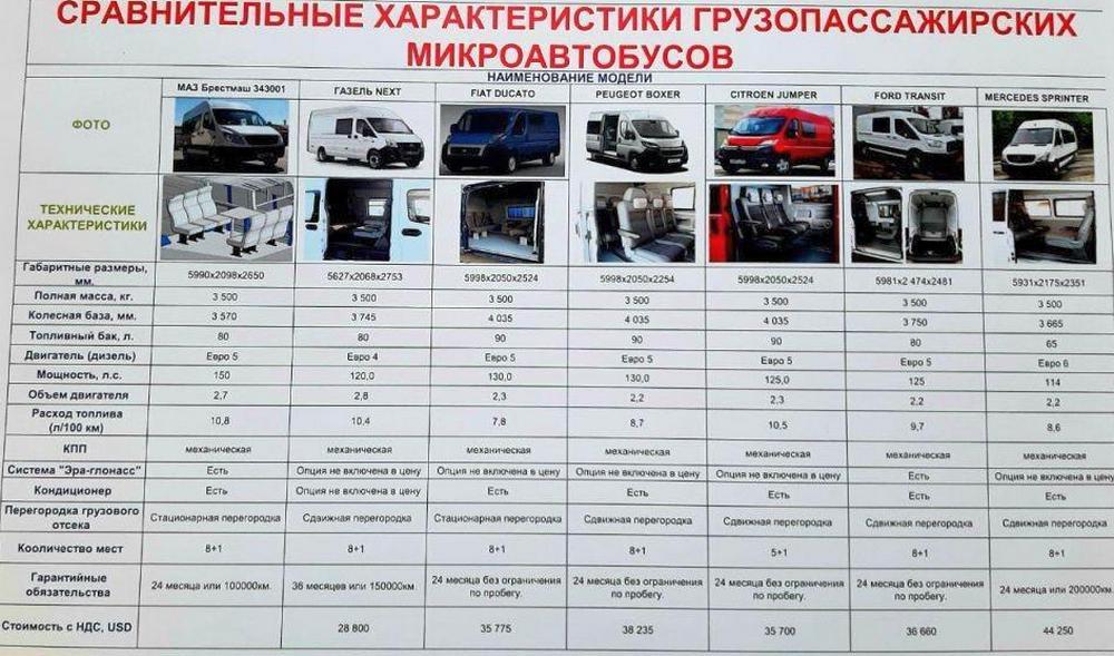 Сравнительные характеристики грузопассажирских микроавтобусов. Фото: телеграм-канал Александра Рогачука