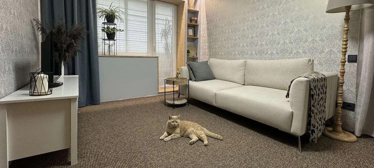 В квартире также есть небольшая кухня, раздельный санузел и гардеробная в коридоре. BGmedia также обратило внимание на кошачий уголок. Судя по фото, у нынешних хозяев живет роскошный британец. Кроме прочего, в распоряжении будущих владельцев также будет подвальное помещение.