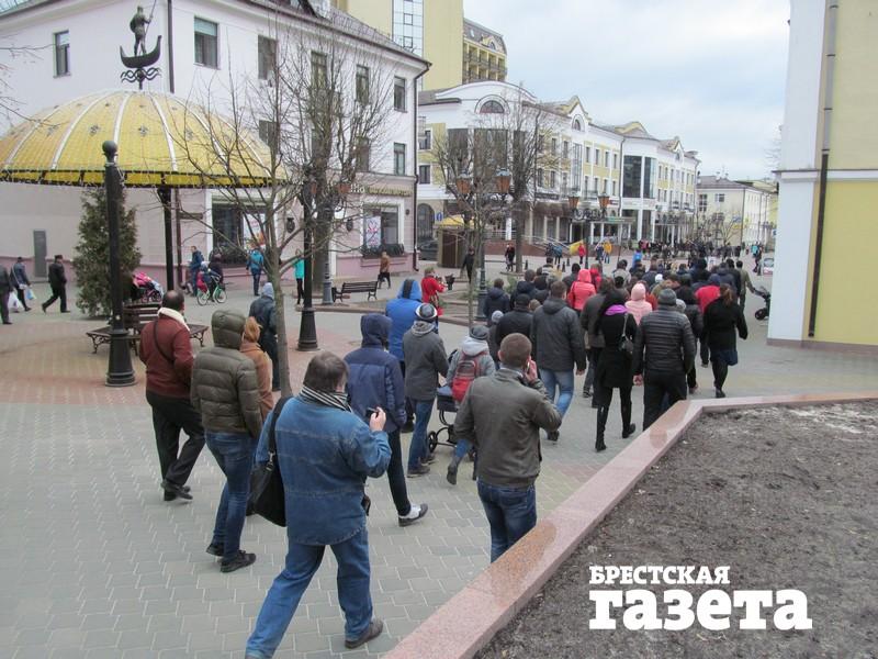 Акция завершилась напротив «Белтелекома». Многие разошлись, осталось человек 30. Полина Шарендо-Панасюк поблагодарила пришедших и объявила, что следующая акция протеста пройдет в Минске 25 марта. В Бресте — 26 марта. Брестская акция во многом будет зависеть от того, что будет в столице. Люди провожают Полину к остановке.