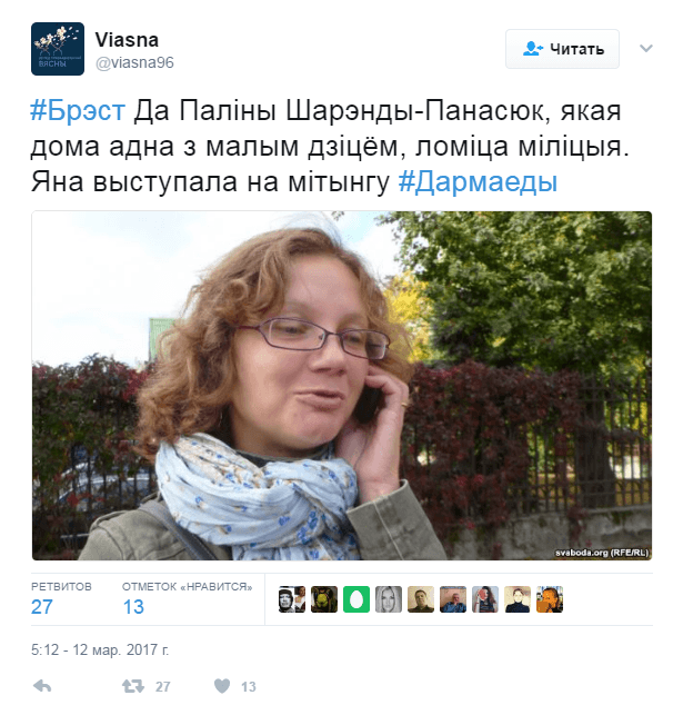 Накануне Марш нетунеядцев прошел в Пинске. Информации о задержаниях его участников не было. А вот после акции против декрета №3 в Молодечно, которая состоялась в пятницу 10 марта, задержали 15 человек, в том числе лидера движения «За Свободу» Юрия Губаревича, председателя ОГП Анатолия Лебедько и сопредседателя оргкомитета по созданию партии «Белорусская христианская демократия» Виталия Рымашевского. Их арестовали на 15 суток.
