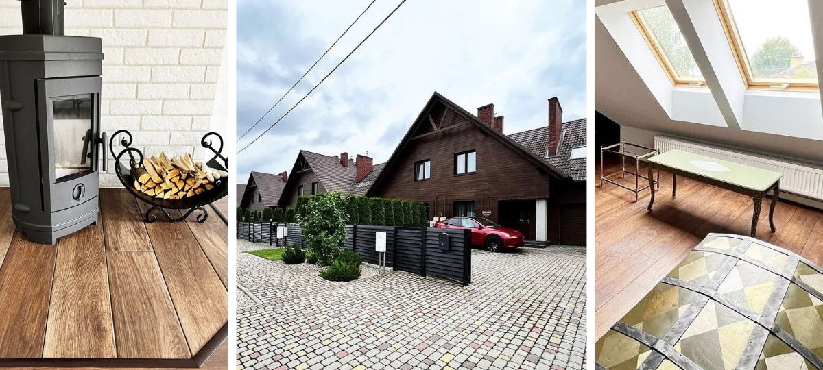Просторный таунхаус, обшитый деревом, находится в Вычулках в Бресте. На прилегающей территории высажено 70 туй, которые создают атмосферную живую изгородь.