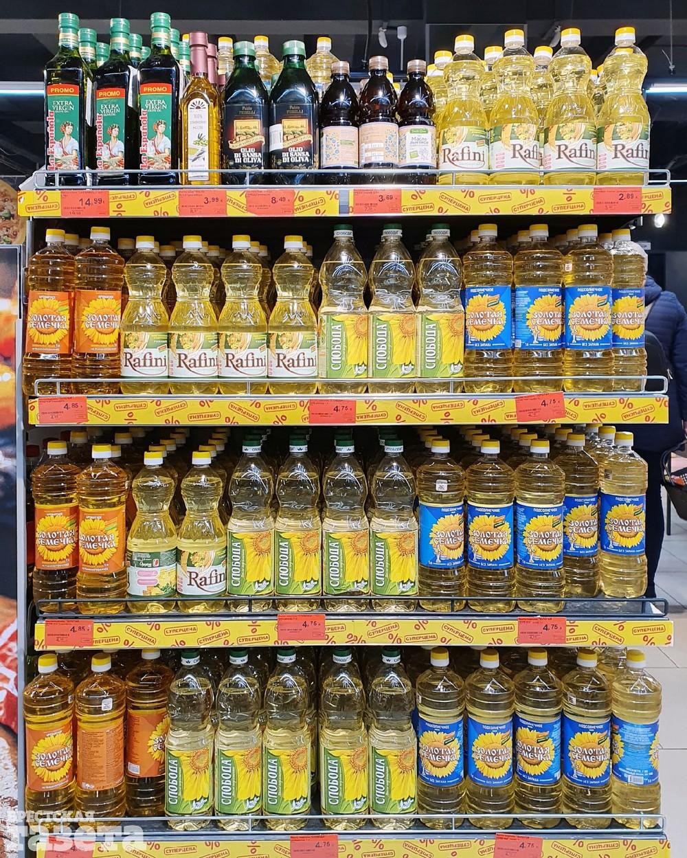Стоит отметить, что цены на растительное масло в нашей стране росли на протяжении всего года. Так, например, в июле 2020-го литровая бутылка рафинированного подсолнечного масла популярной торговой марки в одной из торговых сетей Бреста стоило 2,79 рубля. Во второй половине марта 2021-го (спустя восемь месяцев) его же еще можно было найти в дискаунтерах города за 3,69 рубля. Теперь оно стоит в торговых сетях города дороже 4,5 рублей. По крайней мере в тех, которые 8 апреля посетила корреспондент «БГ».