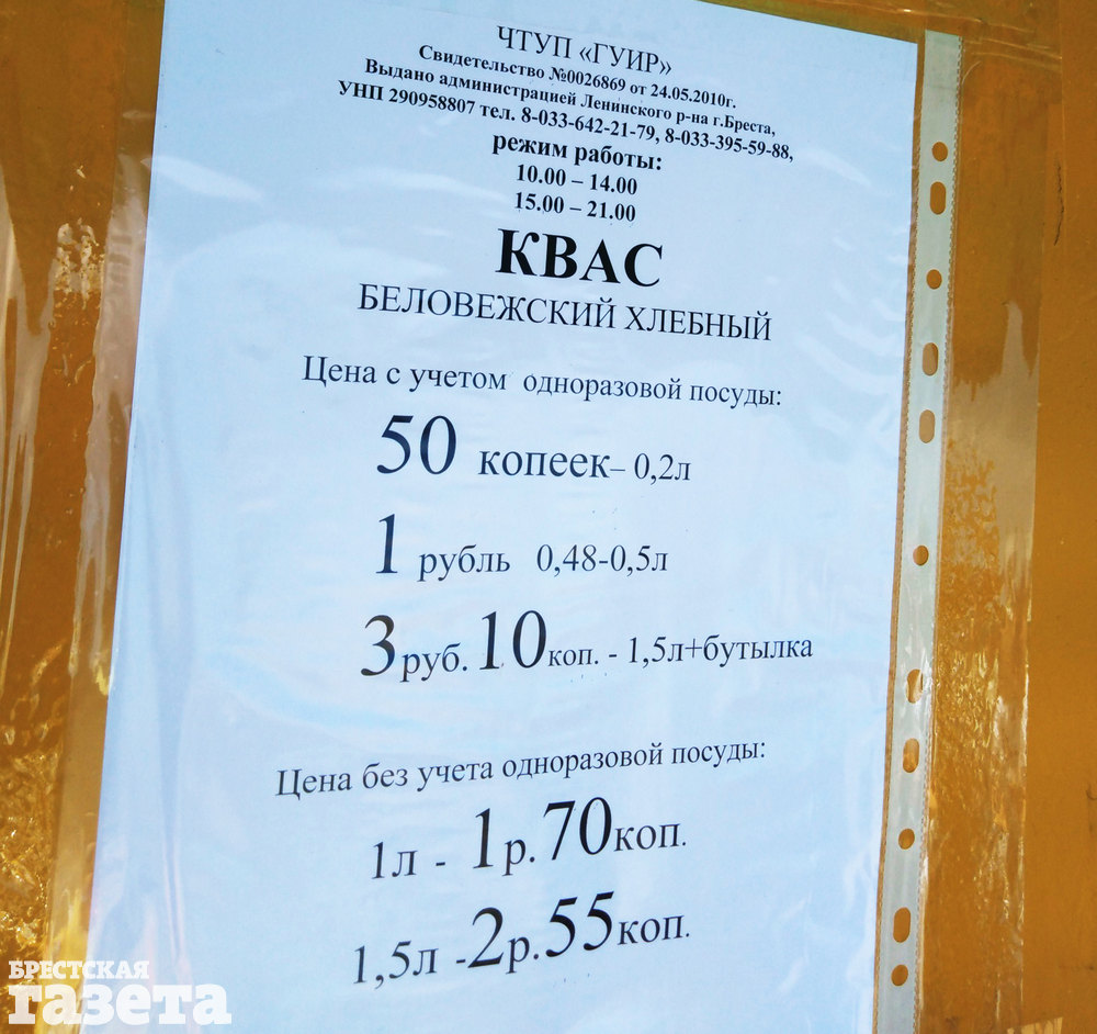 «Квас разливает Брестский пивзавод. В советское время очереди были с банками трехлитровыми. Есть такие гурманы, что одни и те же приходят третий год. Любят квас».