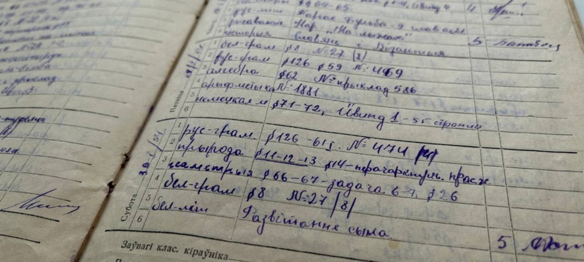 Все записи сделаны перьевой ручкой с помощью чернил, а сам дневник заполнен на беларуском языке. Среди предметов — непривычные современным школьникам «прырода», «руская/беларуская граматыка», «заалогія». А вместе с алгеброй и геометрией дети учили еще и «арыфметыку».