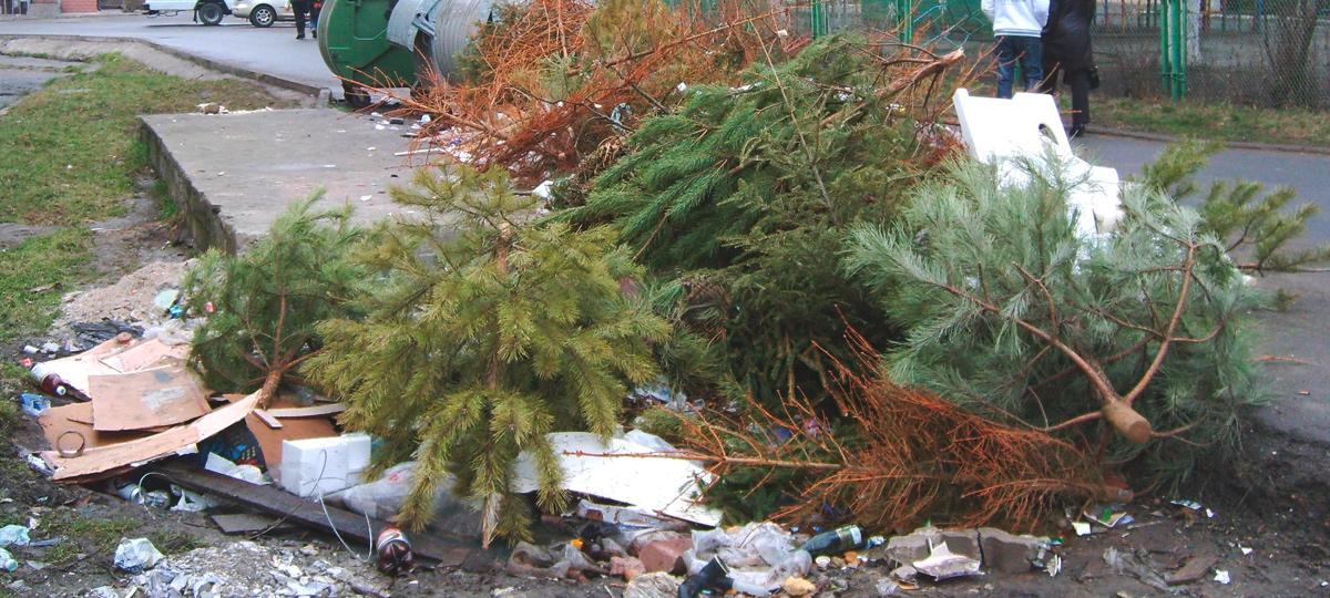 Как показывает практика, не все елки попадают в мусорный бак: после праздников они то и дело сиротливо лежат под окнами многоэтажек и торчат в сугробах. Видимо, не каждому по силам донести ставшее ненужным деревце до специальных мусорных баков, на которых написаны всего три буквы — КГО, что означает «крупноногабаритные отходы».