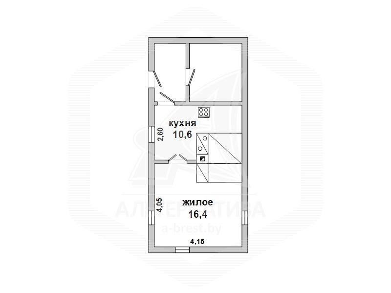Общая площадь — 39,2 кв.м, жилая — 16,3 кв.м, кухня 10,56 кв.м. В глубине дома находится светлая жилая комната, из окон которой открывается вид на три стороны. Балочные потолки — 2,50 м, полы – доска и линолеум, стены оклеены обоями. В доме есть телефон и интернет.