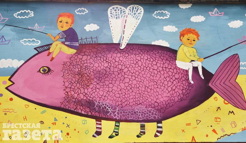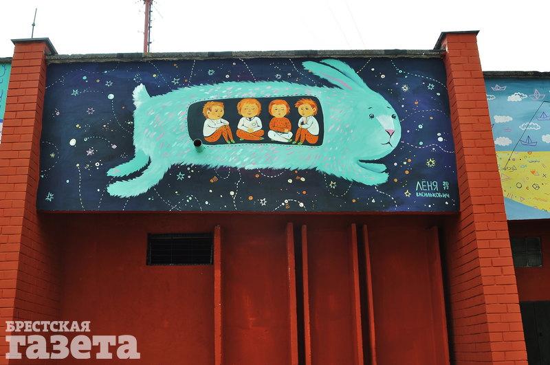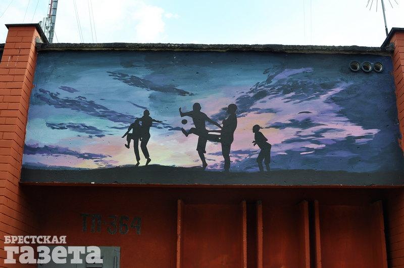 Художница Леонида Василькович украсила теплопункт Брестского котельного хозяйства по ул. Ленинградской. На стене здания, которая выходит на детский центр медицинской реабилитации «Тонус», появились рисунки людей и животных.