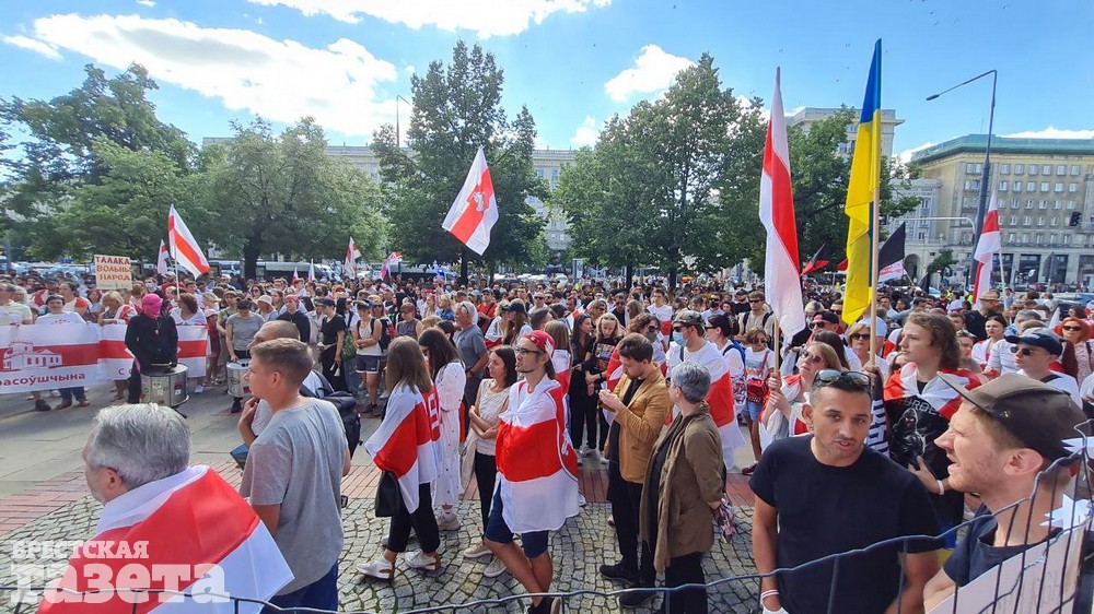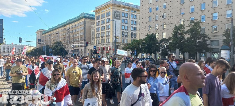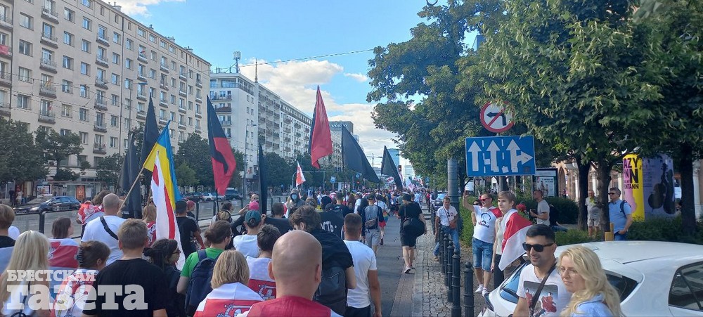 Сегодня в центре Варшавы прошел «Марш годнасці», приуроченный ко второй годовщине протестов после фальсификации президентских выборов в Беларуси 9 августа 2020 года. Беларусы собрались на Площади Конституции и маршем прошлись до Замковой площади.
