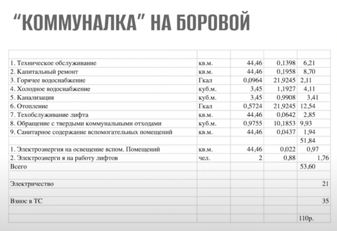 По данным декабря 2022 года, «коммуналка» составила 53,60 беларуских рублей. К этой сумме нужно добавить еще стоимость электричества – 21 рубль, и взнос в товарищество собственников – 35 рублей. Итоговая сумма «жировки» – 110 рублей.