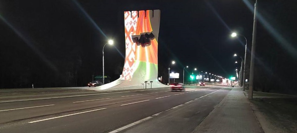 С 23 февраля стелу на въезде в Брест со стороны Минска зачем-то подсветили госфлагом Беларуси. Смотрится так же непонятно, как госфлаг на трубе ТЭЦ. Интересно, чья была инициатива подсветить стелу красно-зеленым флагом.