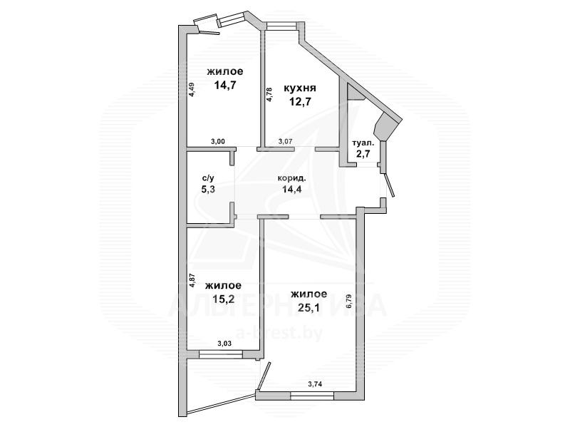 1. 3-комнатная квартира на Маяковского за 565 тысяч рублей