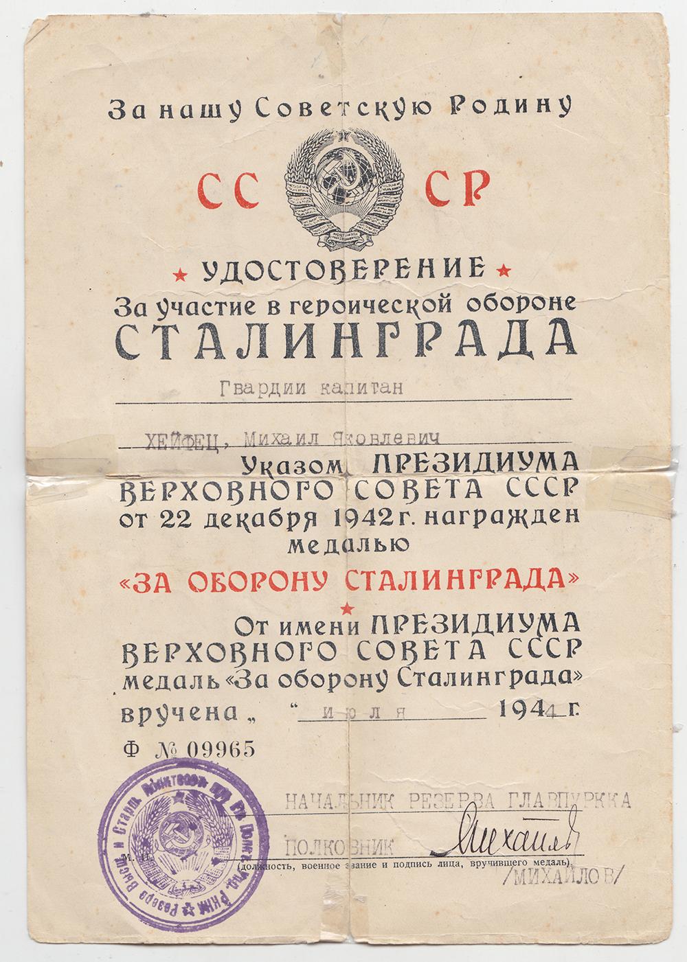 Пообщавшись с супругами Хейфец, мы собрали все известные на данный момент факты об участии Михаила Яковлевича Хейфеца в военных событиях.