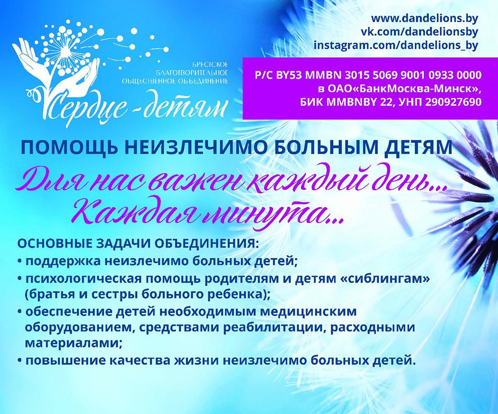 Объединение «Сердце — детям»: e-mail: heartforchildren@mail.ru, тел. (+37529) 818-07-59