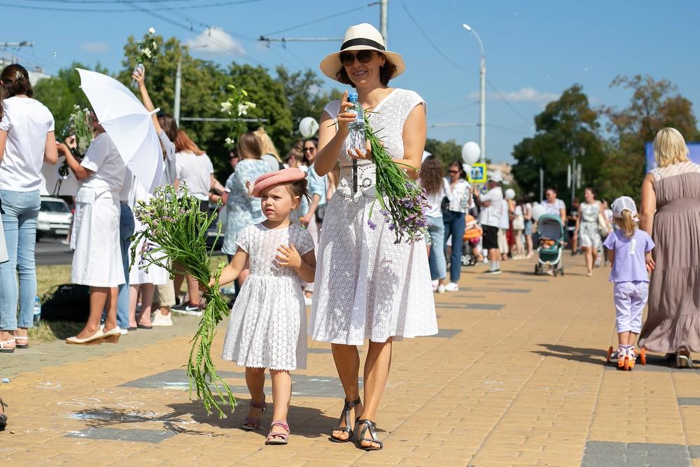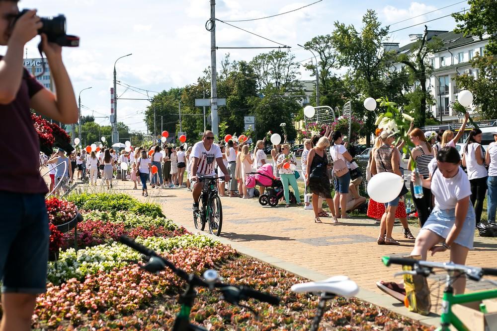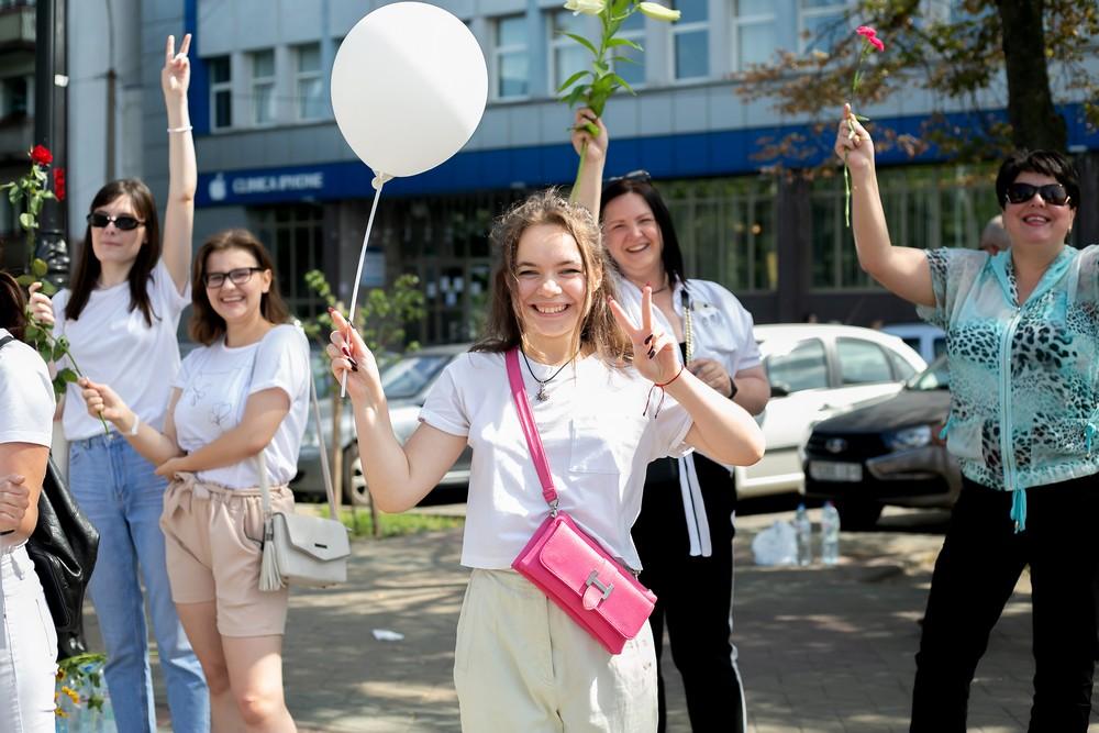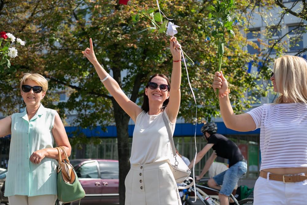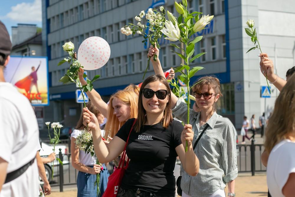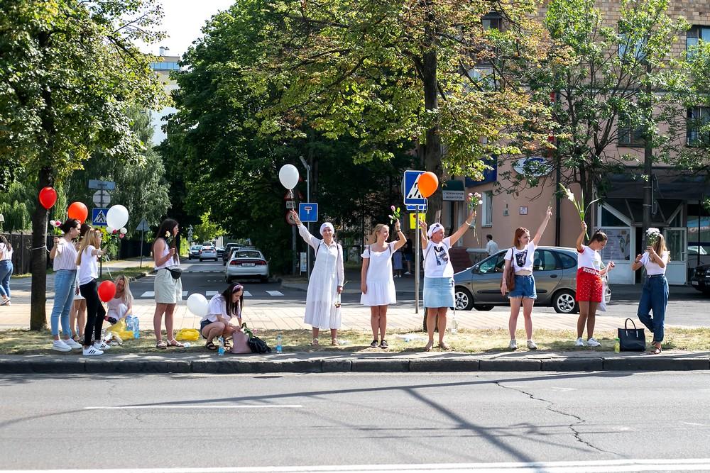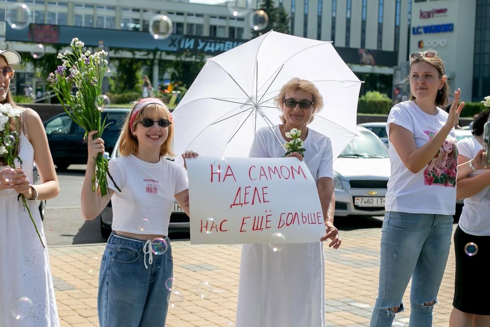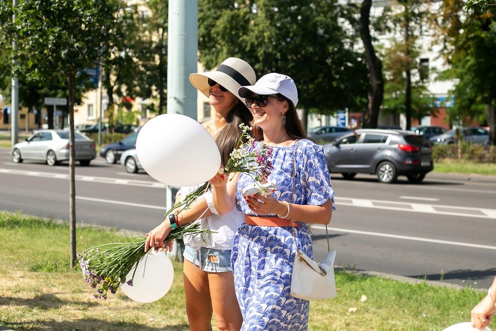 Как и ранее в руках у многих цветы, белые или красные воздушные шары, плакаты с мирными лозунгами: «Остановите насилие», «Мы не овцы», «На самом деле нас еще больше», «Очистили улицы — очистите совесть». Им сигналили проезжающие автомобили.