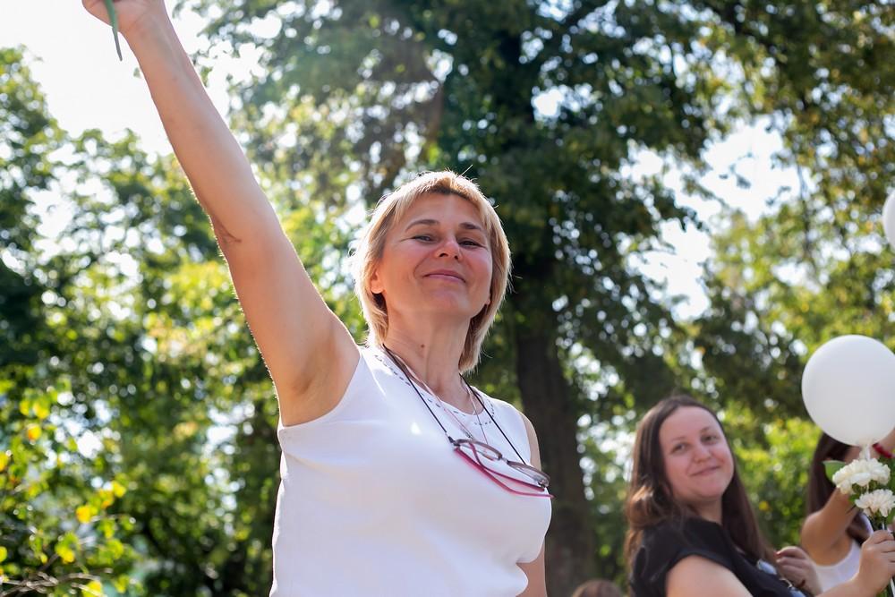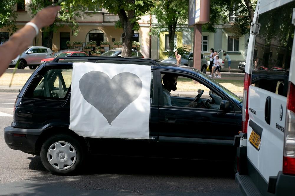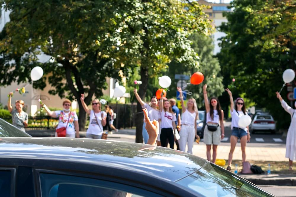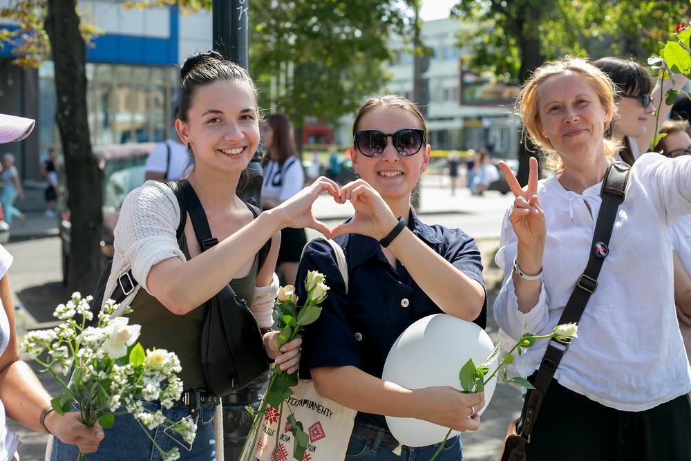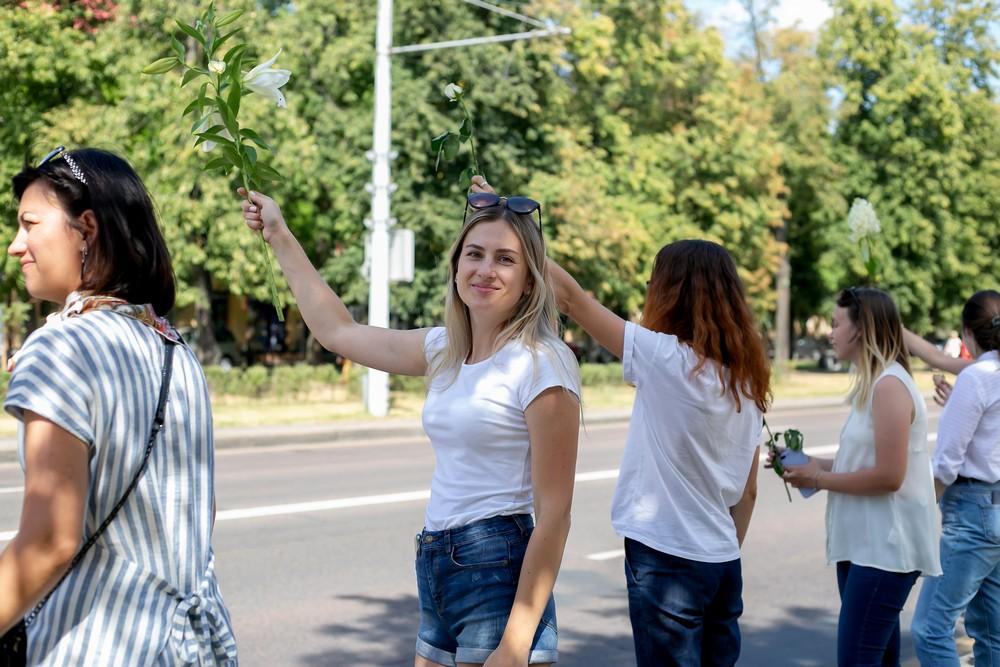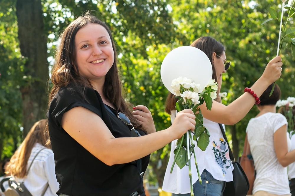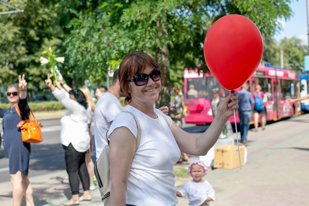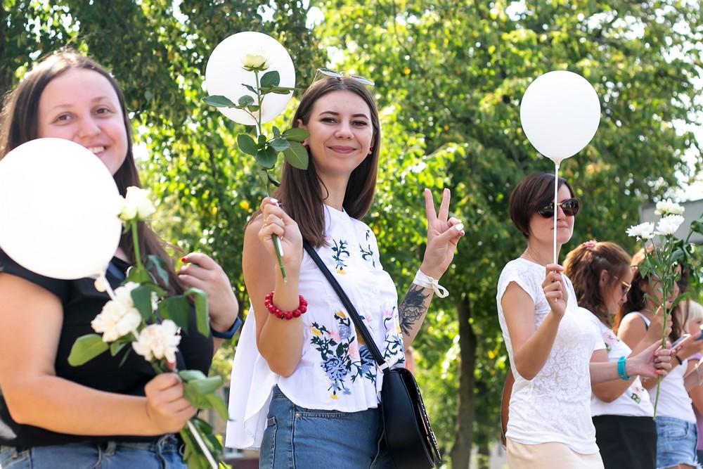 Как и ранее в руках у многих цветы, белые или красные воздушные шары, плакаты с мирными лозунгами: «Остановите насилие», «Мы не овцы», «На самом деле нас еще больше», «Очистили улицы — очистите совесть». Им сигналили проезжающие автомобили.