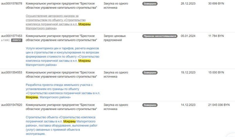 Журналисты BGmedia также нашли информацию о строительстве погранзаставы возле Мокран в госпрограмме «Пограничная безопасность» на 2021–2025 годы. Согласно ей, в прошлом году на строительство «Мокран» выделили 3,85 млн рублей, в этом году выделят 9 млн рублей, в 2025-м — еще 6 млн рублей. Суммарно за три года — 18,85 млн рублей. Это меньше, чем общая сумма, которая есть в тендерах на сайте госзакупок.