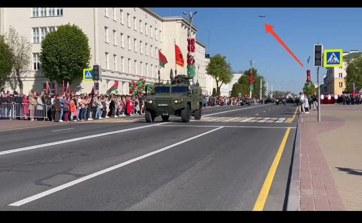 «Парад военной техники возглавлял вот этот маленький квадрик.) Так как вертолёта не было, квадрик был вместо него», — написал анонимный пользователь и прикрепил скриншот с видеозаписи парада, где сверху был виден квадрокоптер.