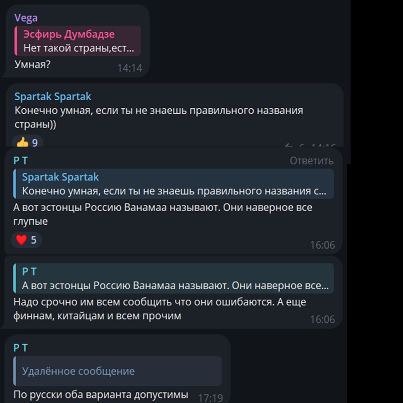«Многим не приятно слышать Рашка,рассея, эрэфия и т.д, украена, хохлома и т.д (без обид пожалуйста, никого не хотел обидеть) но каждому гражданину своей страны это не приятно также как и нам в Беларуси! Поэтому пинать на Т9 или необразованность не прокатит, Беларусь, Россия, Украина! Или не возмущайтесь если вас ткнуть носом как правильно?».