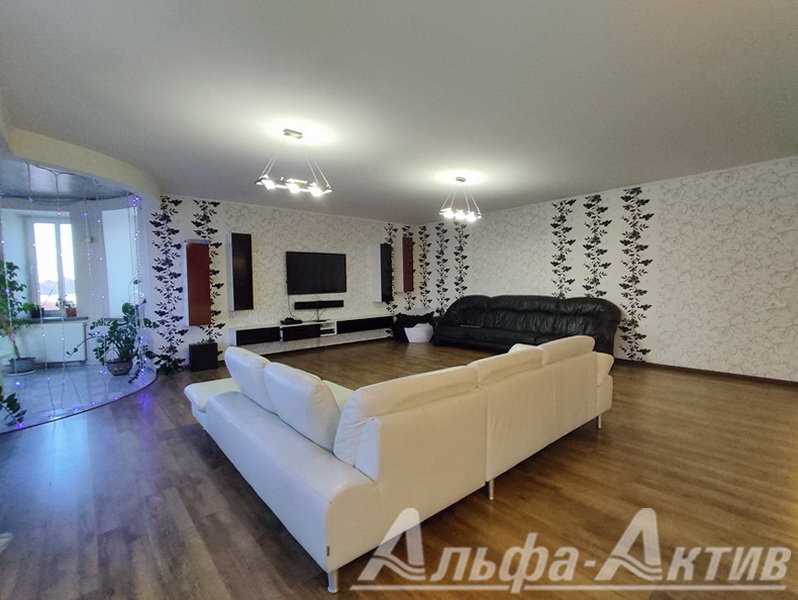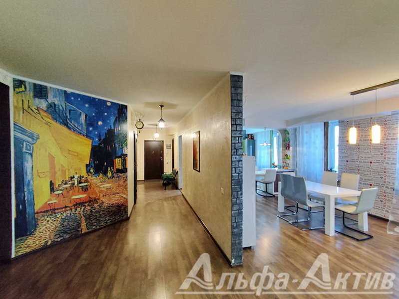 Квартиру – в кирпичной пятиэтажке 2009 года постройки. Находится на четвертом этаже. Из эркерных окон открывается панорамный обзор на центр Бреста. Продавец заявляет, что комнаты оформлен в стиле современной классики. Три спальни изолированы, а гостиная объединена с пространством кухни.