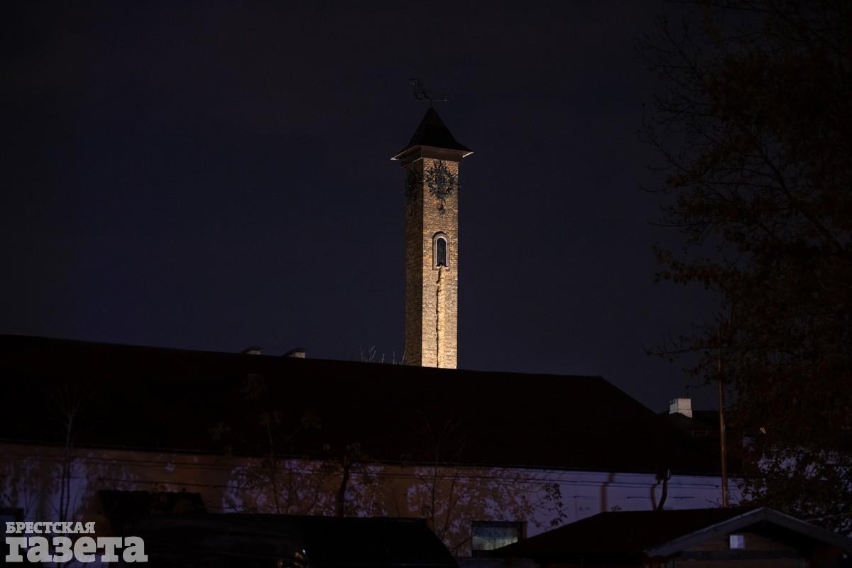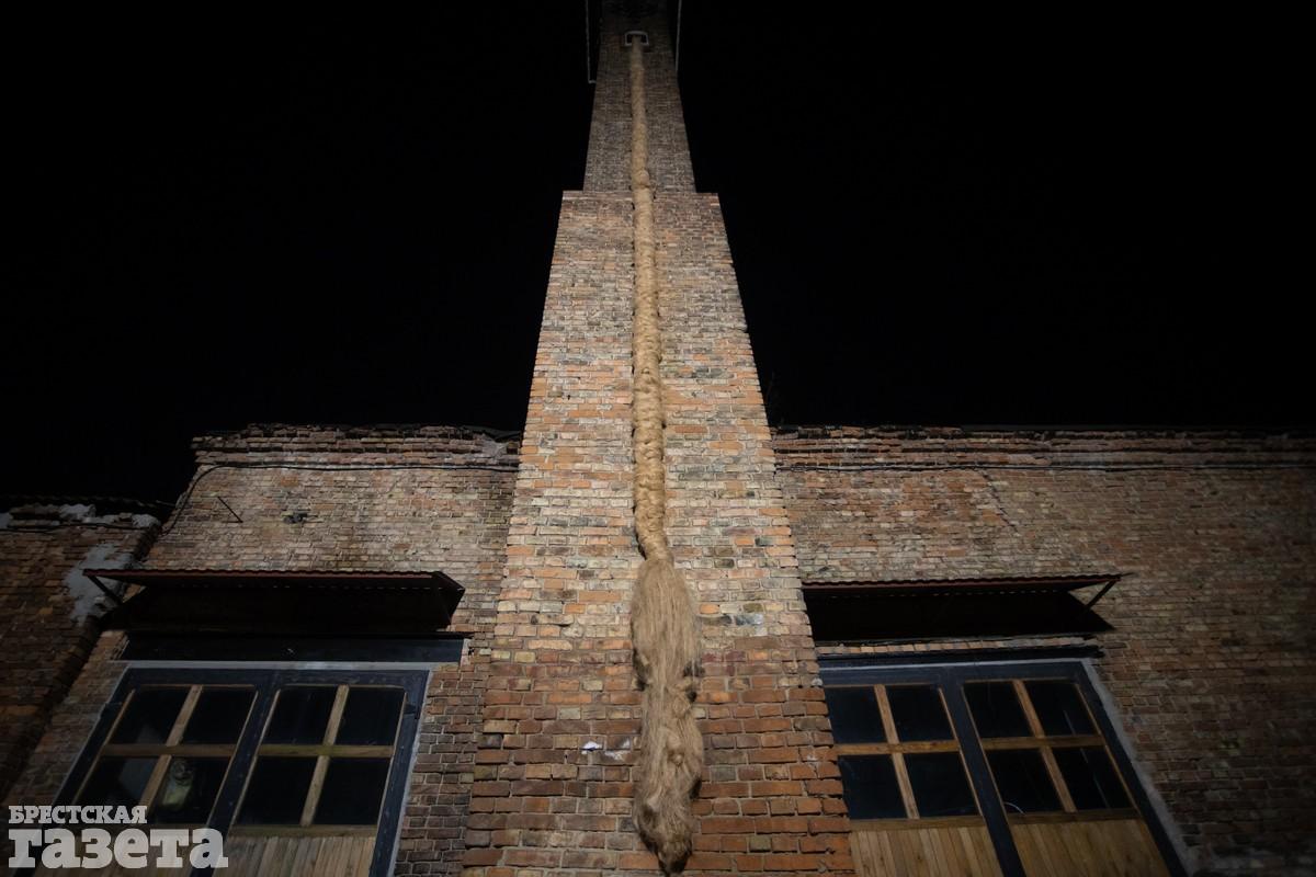 Для инсталляции «Запасной выход» рабочие «заплели» косу Рапунцель на башне во дворике здания.