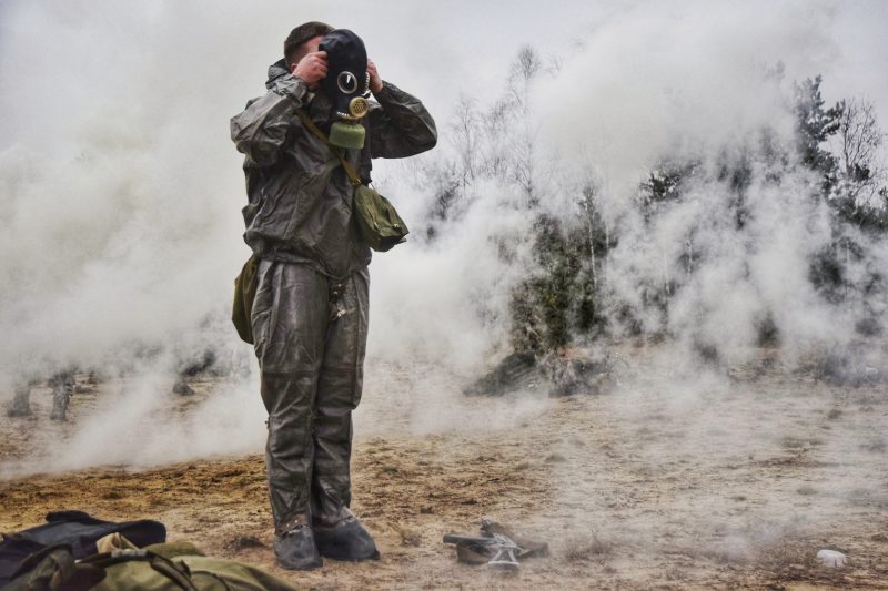 На двух других фото разведчики надевают противогазы во время дымовой завесы и эффектно стоят на месте в дыму. А в чем заключалось задание? Как можно быстрее надеть противогаз? Или устроить дымовую завесу, чтобы покинуть поле боя?