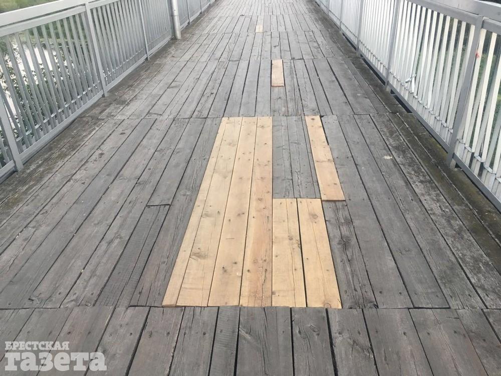 Напомним, 5 августа «БГ» написала о том, что подвесной мост возле Брестской крепости обветшал и требует ремонта. Меньше, чем через две недели мы обнаружили, что косметический ремонт произвели.