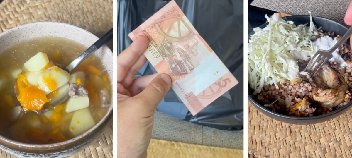 Мужчина решил провести эксперимент и проверить, какое выйдет меню на пять рублей в день у него. Например, он приобрел свиные кости за 19 копеек за килограмм, которые пошли на приготовление супа. Также беларус купил яйца, приправы, морковь, лук, картофель, куриные спинки, макароны и гречку на развес. На это все блогер потратил 18 BYN. По его словам, этих продуктов должно хватить на четыре дня.