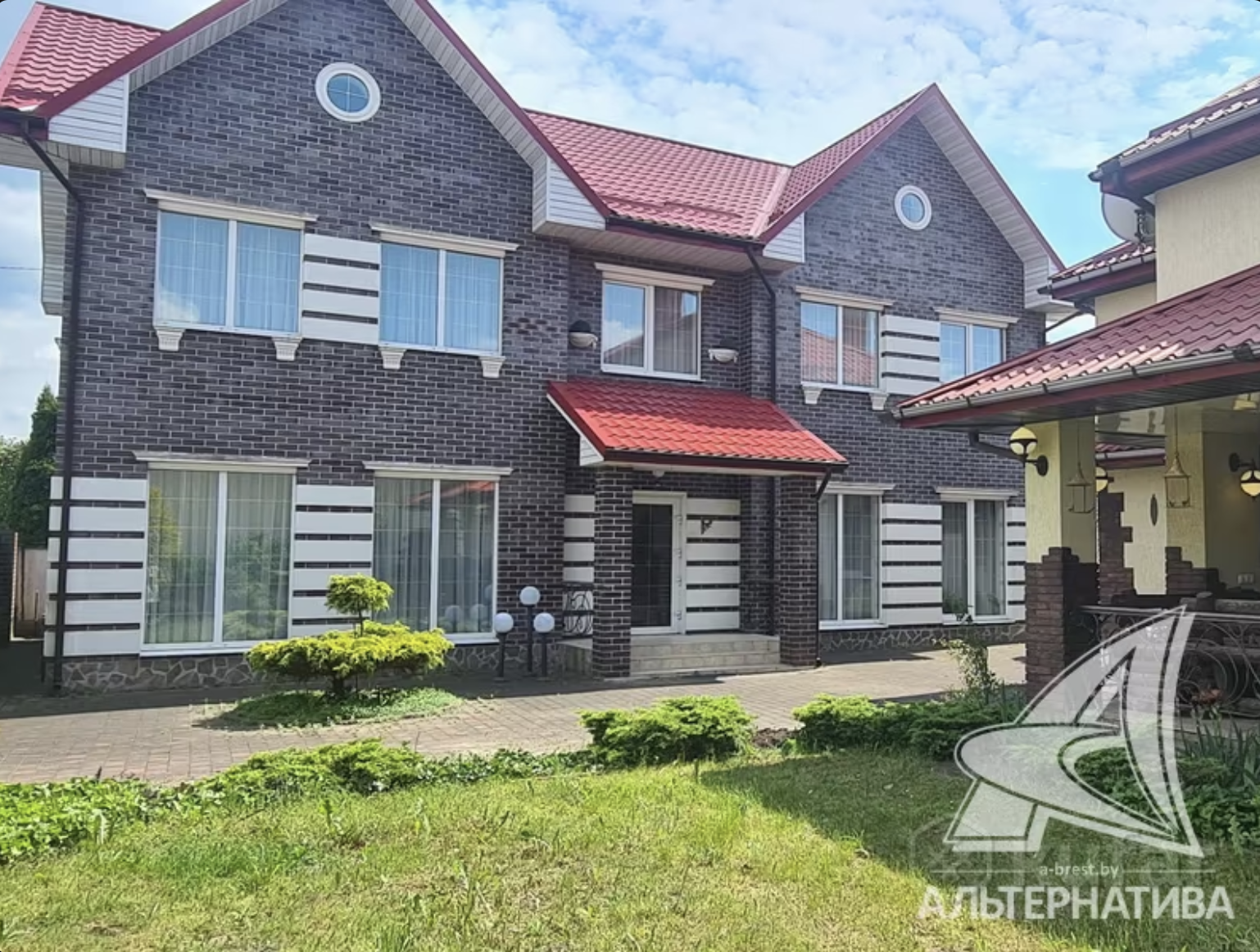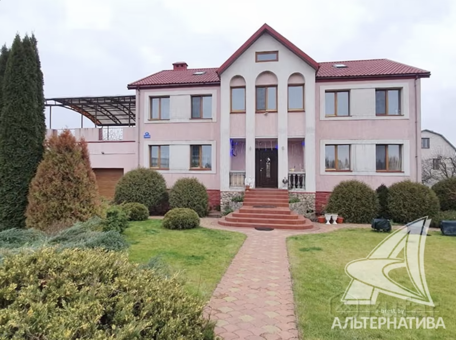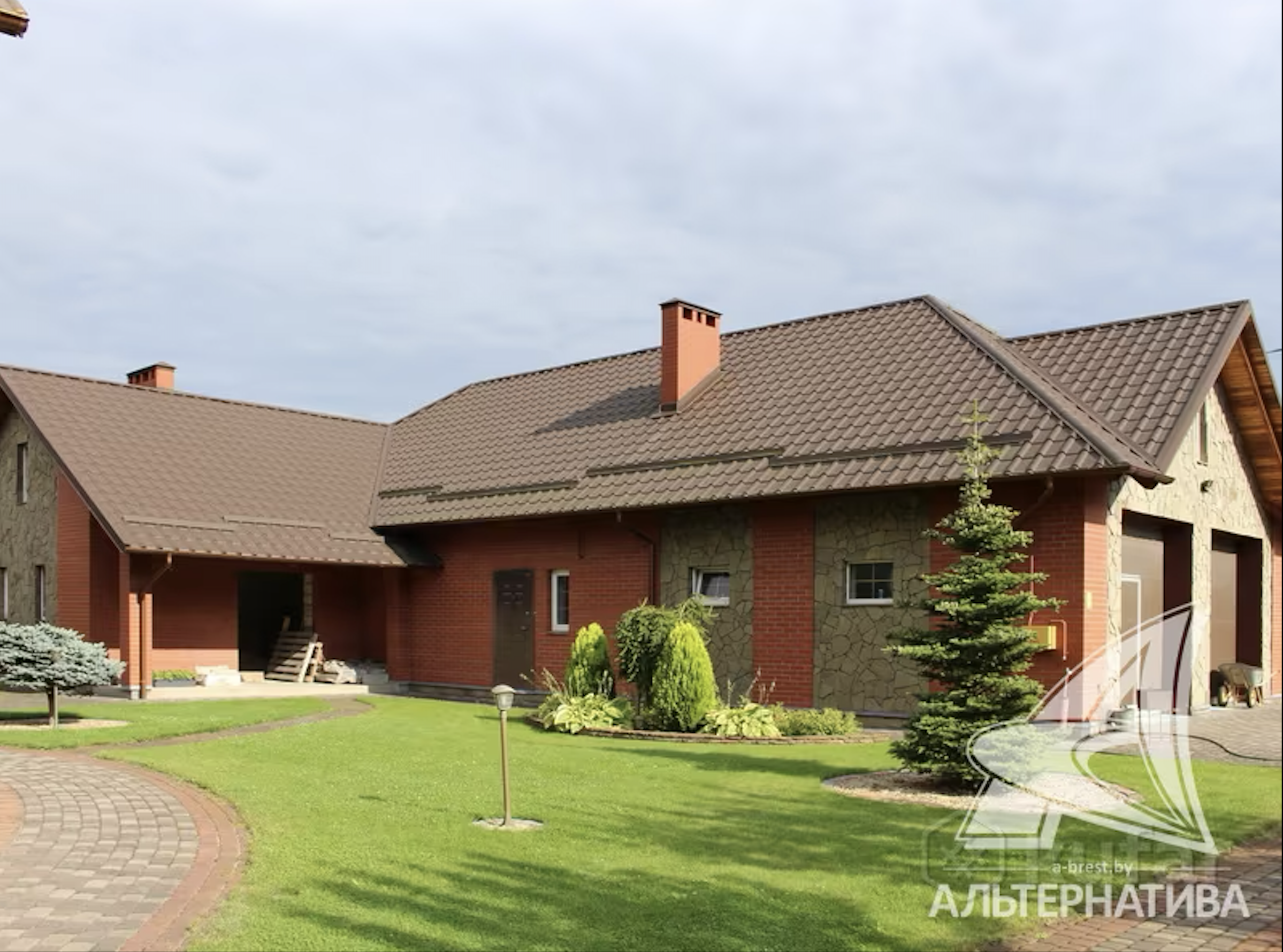 На участке выполнен ландшафтный дизайн, посажен фруктовый сад, есть беседки и гараж на 3 машины. К дому идут асфальтированные подъездные пути, а рядом есть остановка общественного транспорта.