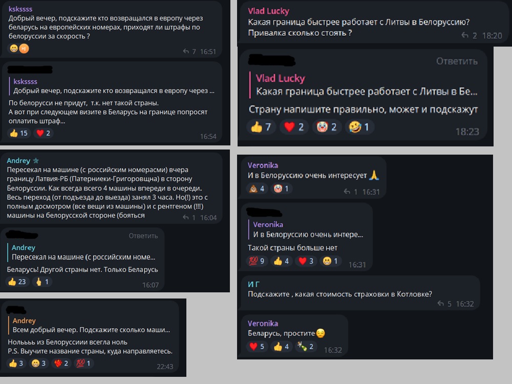 По реакциям на сообщения в приграничных чатах можно понять, как относятся к тем, кто пишет «Белоруссия». А те, кто поправляет россиян, получает на свои сообщения положительные эмодзи.