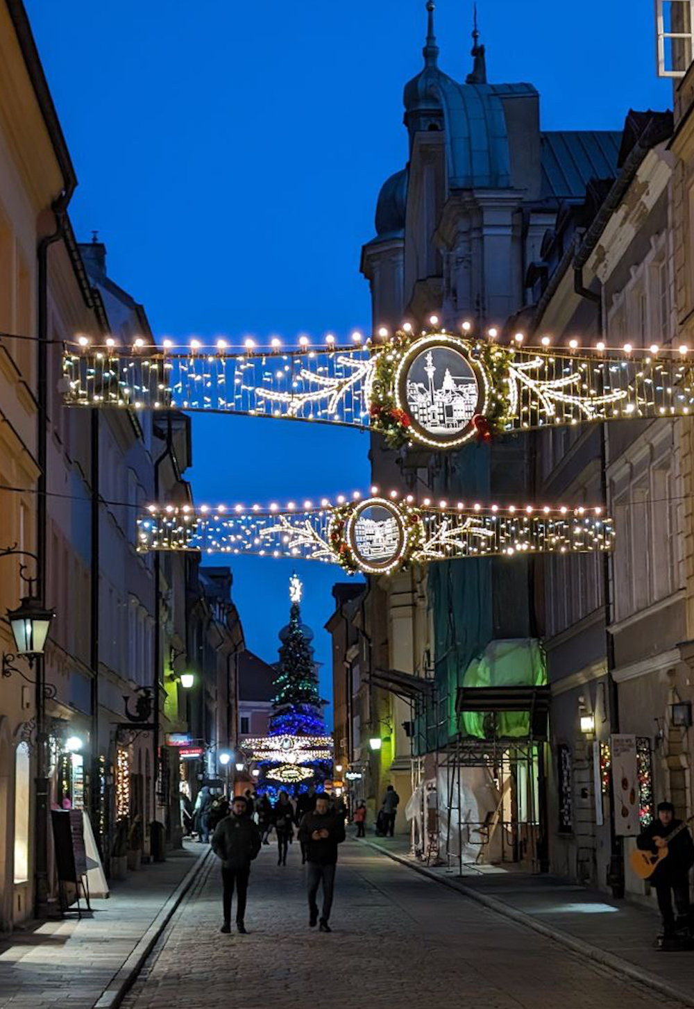Отдельного внимания заслуживает праздничная иллюминация Варшавы. В этом году улицы города украсили в стиле ретро.