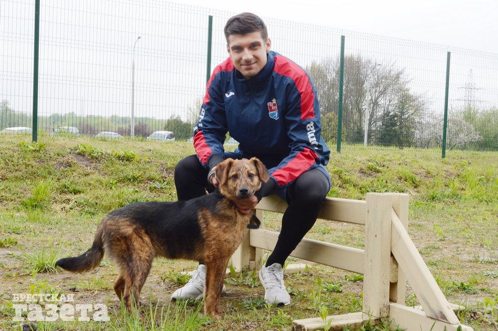 Андрей Залеский, футболист «Динамо-Брест», и Сэм:
