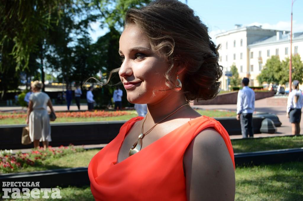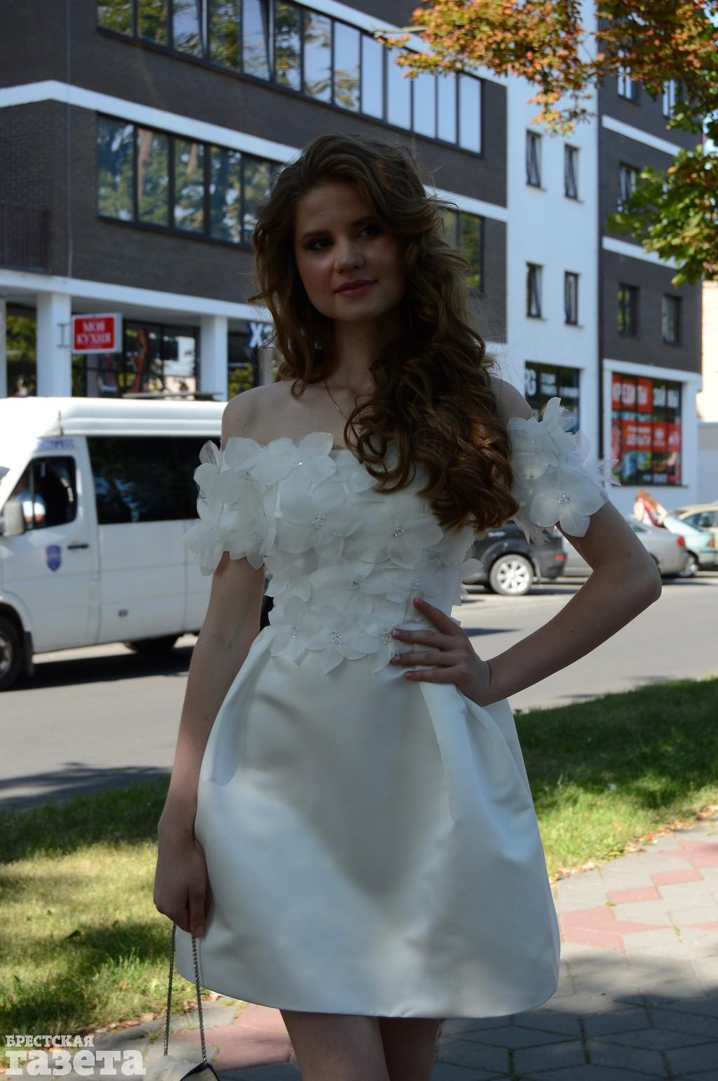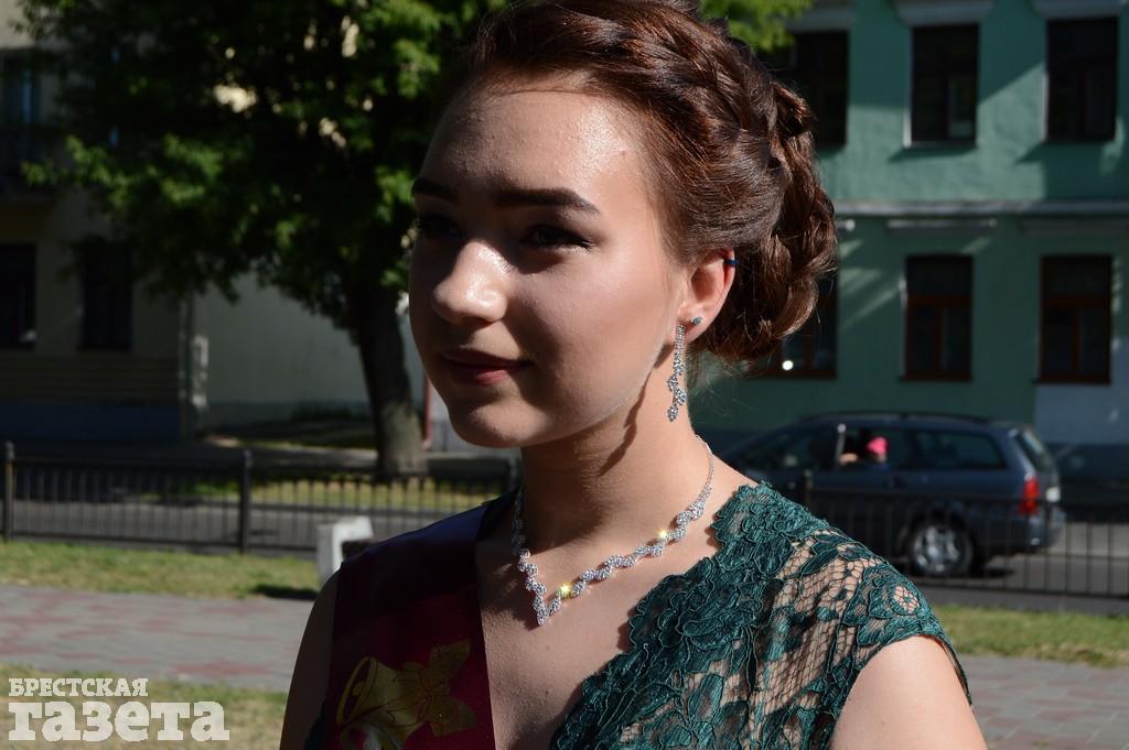 Когда искала наряд на выпускной, ходила везде в Бресте и ничего не нашла. Много магазинов обошла. Даже на рынке смотрела и в торговых центрах. А потом поехала в Минск, там открылся недавно один фирменный магазин, там очень много платьев. Вот там я действительно чуть ли не каждое платье мерила. Там и нашла. Надела голубое, у меня глаза голубые, но как-то все равно не подошло, было слишком бледное. Надела зеленое – не понравилось. А это сразу понравилось по цвету.