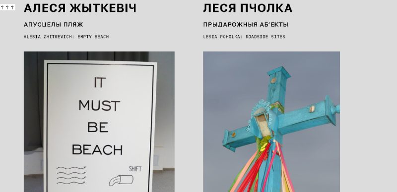 Например, цикл In pairs («В парах») объединяет двух художников в одном выставочном поле: работы Базинато и Цемры, Романа Аксёнова и Маши Святогор, Алеси Житкевич и Леси Пчелки. Это не просто «сайт с картинками», а виртуальное пространство, которое учитывает специфику цифровой среды и, следовательно, предел зрительского внимания.