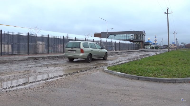 В сюжете рассказали о состоянии гравийной улицы Пинской в Галево. Как объяснил главный инженер Пинского ДРСУ-104 Александр Довжук, из-за осадков и высокой влажности обеспечить здесь хорошее покрытие невозможно. Как следует из сюжета, «гравийка» стала разрушаться из-за построенных здесь объектов инфраструктуры — магазинов «ОМА» и «Грошык», возле которых развернулось оживленное автомобильное движение. Именно из-за них «многократно» выросла нагрузка на дорогу, а в противном случае жители использовали бы ее гораздо реже и не довели бы до такого состояния, считают инженеры.