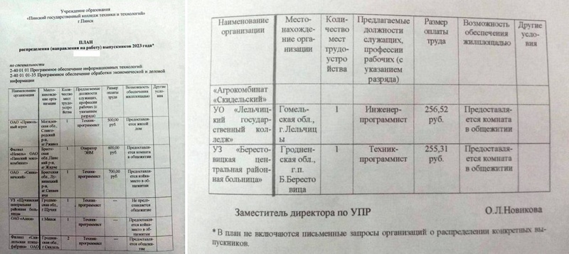 Молодым выпускникам Пинского колледжа техники и технологий предлагают отправиться работать по распределению на зарплату от 255 рублей в месяц. Об этом местному изданию «Медиа-Полесье» рассказала мама одного из учащихся.