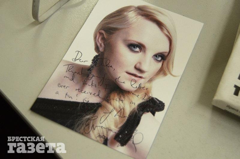 В ее коллекции есть также подписи белорусских звезд. Среди них Дарья Домрачева, Тео и Янина Малинчик. Актриса Брестского академического театра драмы снялась в российском фильме «Батальон», тем не менее очень удивилась, когда к ней подошли взять автограф, и даже рассказала об этом событии на своей странице в социальной сети Instagram.