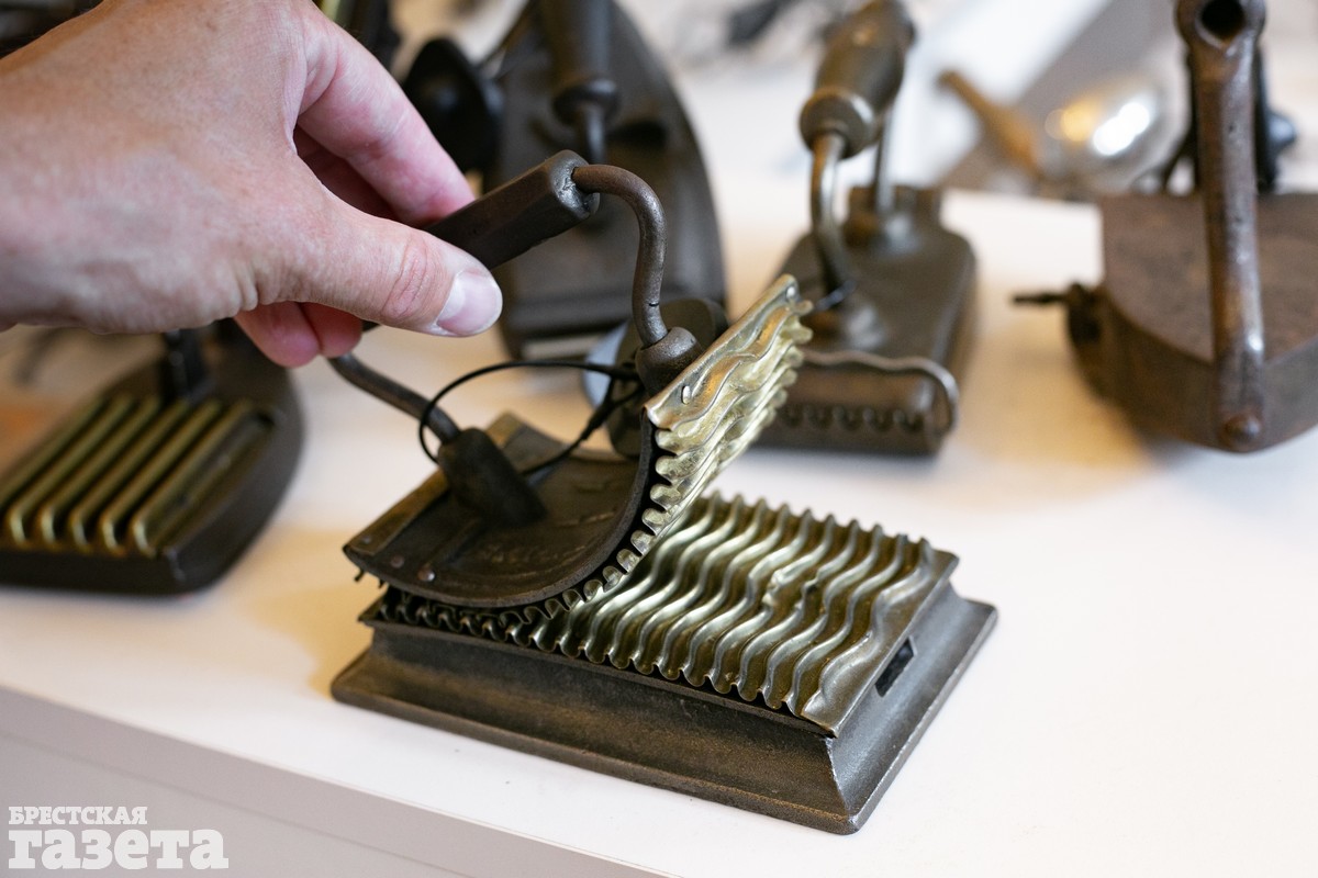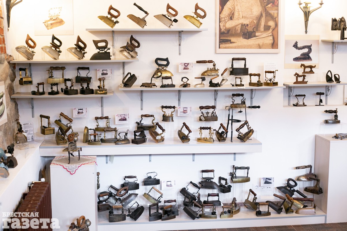 По словам сотрудников музея, коллекцию предоставила семейная пара: Борис и Юлия. Они собирали ее около двадцати лет. Часть экспозиции – еще две сотни утюгов – находится в другом музее Беларуси. А началась эта необычная коллекция с покупки старинного предмета быта на барахолке в Санкт-Петербурге. Самый большой утюг в собрании – корабельный, для приведения в порядок шинелей. Весит он 15 килограмм и разогревается около пятидесяти минут. Самый маленький утюжок из представленных можно рассмотреть под увеличительным стеклом – это подвеска из белого металла.