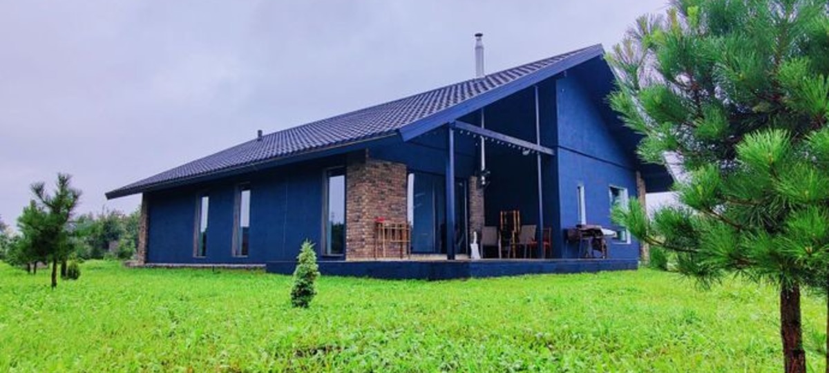 Уютный одноэтажный дом был построен в 2021 году из газосиликатных блоков. Задний фасад и часть переднего выложены из бельгийского кирпича ручной формовки, а по периметру и несущим стенам залит армопояс. Крыша – из немецкой металлочерепицы с влаговетрозащитной мембраной. Стены утеплены. С двух сторон дома расположились уютные террасы. Внешне все выглядит просто, но со вкусом.