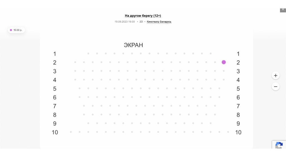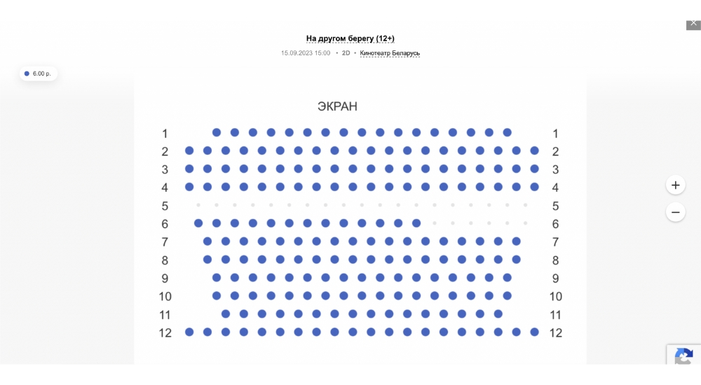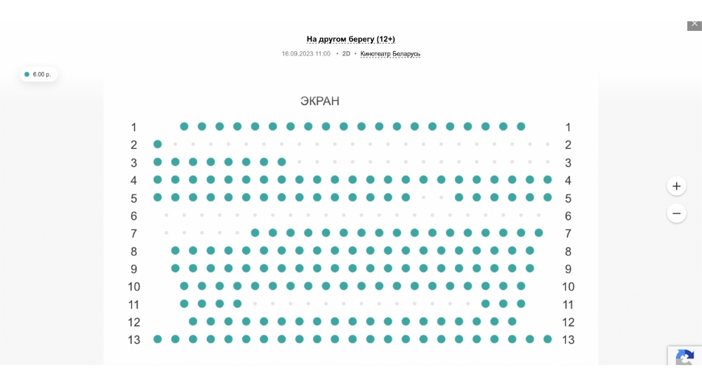 На 19 сентября осталось только 1 свободное место в зале. Видимо, кино в этот день будут смотреть работники крупного брестского предприятия.