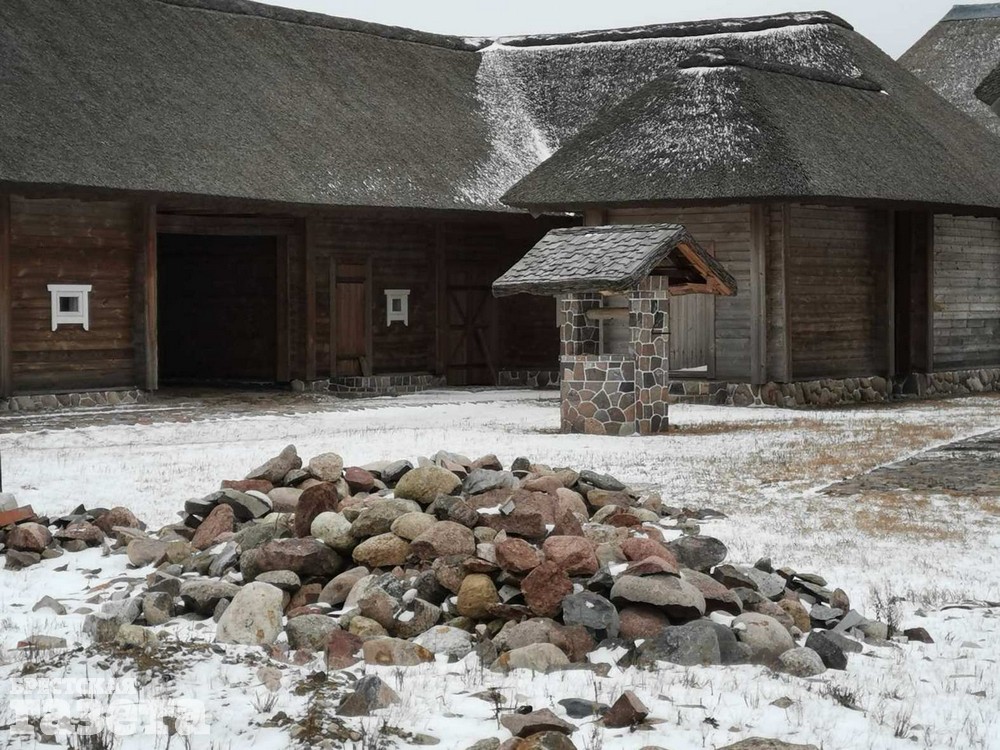 Подо льдом и снегом сейчас скрыто искусственное озеро. Оно образовалось еще во время строительства “олимпийки” (отсюда брали песок на подсыпку дороги). На начальном этапе создания этнокомплекса водоем очистили и расширили. Каскад из 5 озер должен был стать жемчужиной туристического объекта.