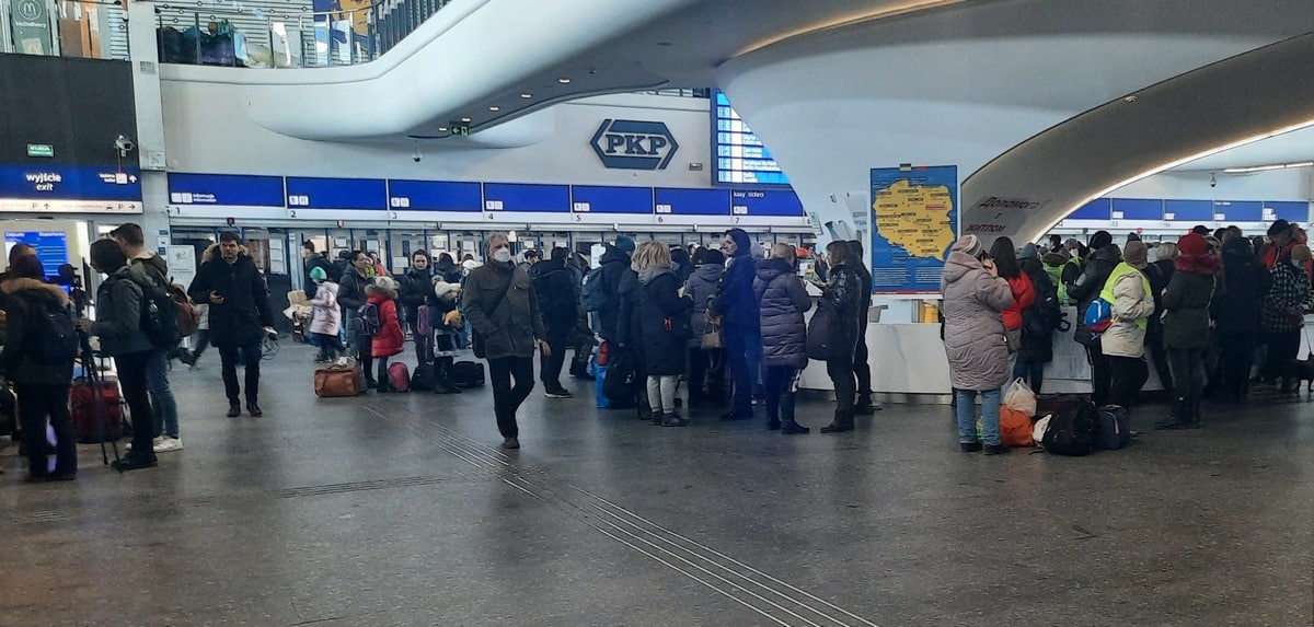 На центральном железнодорожном вокзале Варшавы размещен пункт помощи беженцам из Украины.